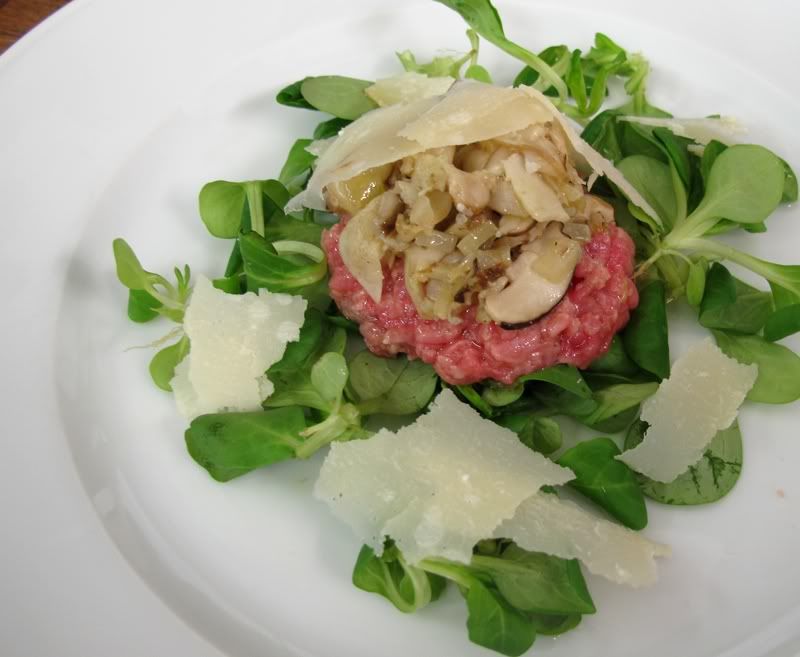 - Place in the center of the plate a little bit of salad (lattuce), place the meat, giving the shape of a meatball.